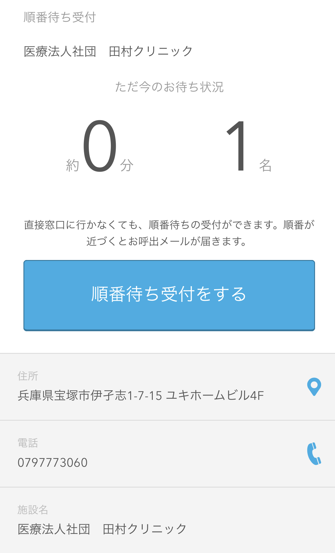 下記をクリックしていただくと、順番予約のページに移動します。順番の5人前にはご来院いただくようお願いいたします。